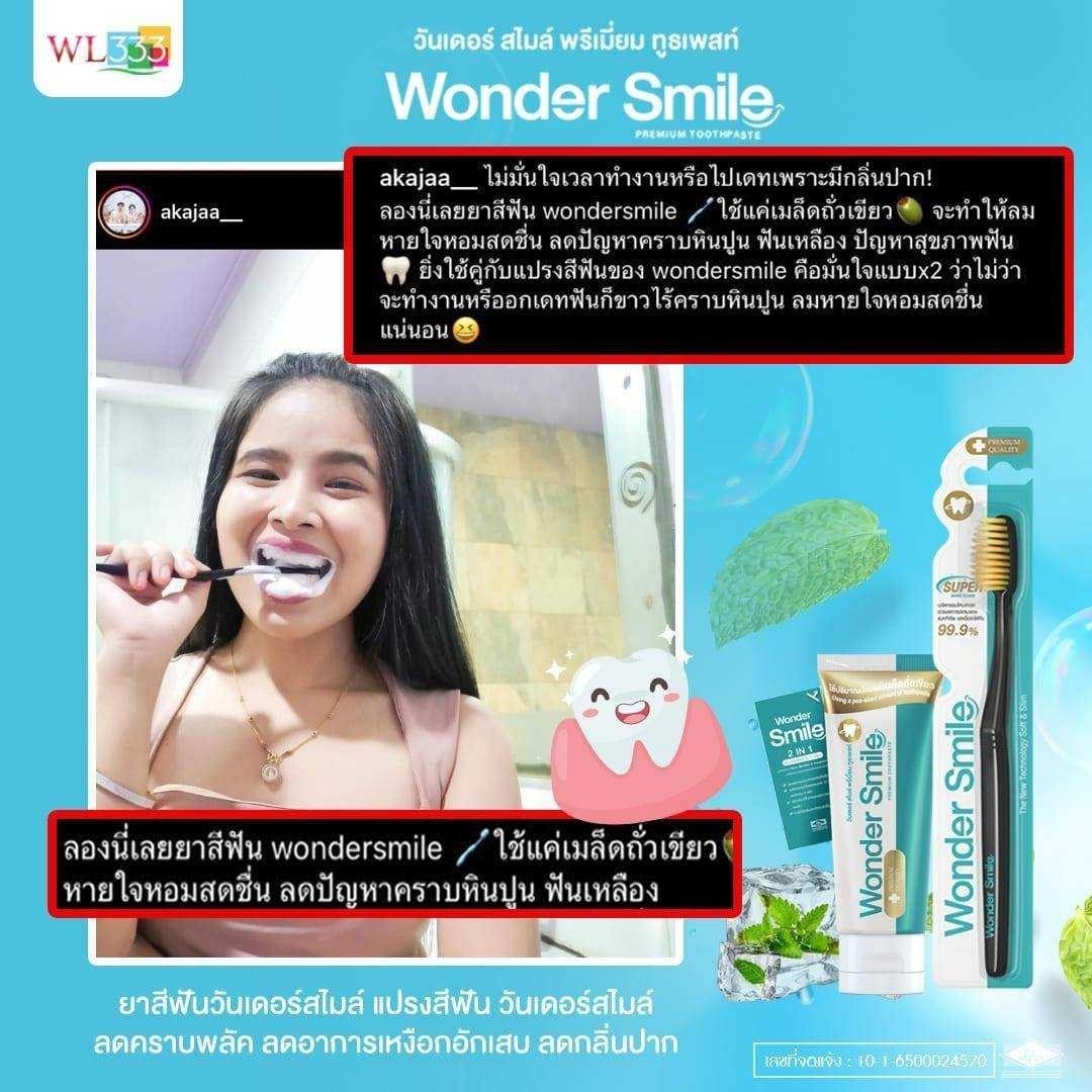 ปังมากกก นี่เป็นคนชอบกินชาเย็นแล้วฟันเหลืองมาก ลองใช้ยาสีฟันตลาดก็ยังเหลือง แต่พอหันมาใช้ Wondersmile ปัญหาฟันเหลืองคือหายไปเลย อยากให้ลองใช้กัน ของเขาดีจริง!!!